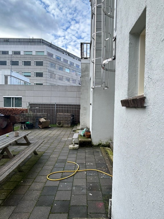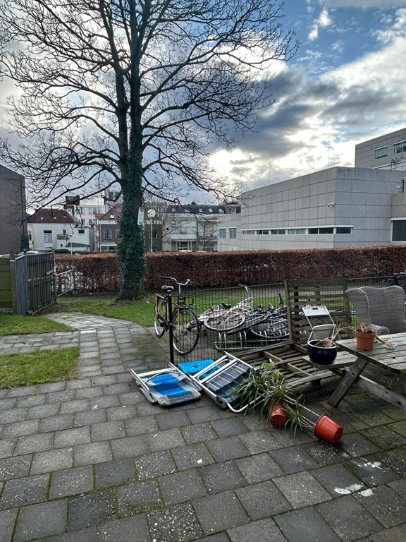 Achter het huis bevindt zich een grote gezamenlijke tuin, waar er ook ruimte is om jouw fiets te stallen.
